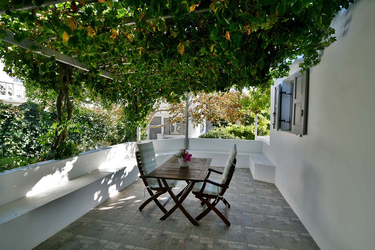 while the element that will win you over is the island-style veranda with a view to the lush garden and the traditional settlement.